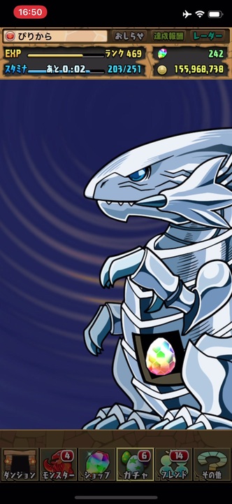 The latest tweets from @mmmorx ティンニン&メタトロン ステータス HP:25/攻撃:1255/回復:644 覚醒 リーダースキル ドラゴンと回復タイプの攻撃力と回復力が15倍。 HP満タンか50%以下で、光属性の攻撃力が4倍。 スキル ハイヒール 回復力×7倍のHPを回復、バインド状態を3ターン ティンニンたまドラを集めるのであれば、 ドロップ率2倍時 にコラボダンジョンの超地獄級を周回するようにしましょう。 ドロップ率2倍時であれば、ティンニンたまドラを落とすカクセイドラゴンが確定になります。